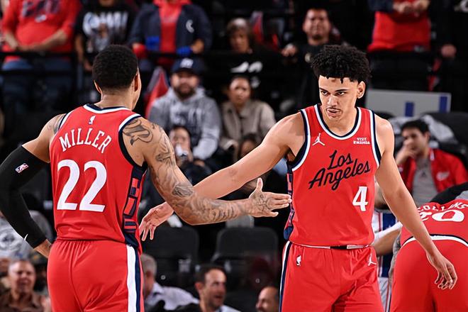 本场比赛中,快船的替补侧翼新星乔丹-米勒(Jordan Miller)的手感并不能算是特别突出,但是他还是展现出了自己不俗的调整能力,而且看起来他也是一名很有经验的球员。米勒全场出场22分41秒,投篮6中1,三分线外2中0,罚球6中6,得到了8分1篮板4助攻的数据,还有1次失误和2次犯规,正负值为-4。米勒确实没有找到自己的手感,他的进攻效率一塌糊涂,他在三分线外也没有找到自己的手感,但是他还是通过内线杀伤得到了一些罚球的机会,他也是抓住了机会得到了一定的分数。不仅如此,米勒也是展现出了一定的传球能力和组织能力,他还是在进攻端起到了不错的效果。总体来看,米勒还是发挥出了自己的特点。如果他的手感更好一些,他在场上的作用还会更加突出。