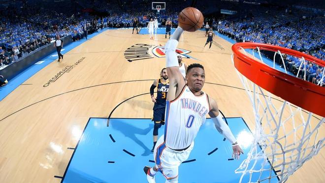 巅峰时期的威少,完全不需要复杂的变向和节奏,而是直接爆发加速,就能够完成过人,加上劲爆的身体素质,即便面对高大的内线防守人,他也是丝毫没有畏惧,屡屡完成海报级别的扣篮。所以,在外界看来,威少的身体素质,完全可以排名整个历史控卫的第一名。