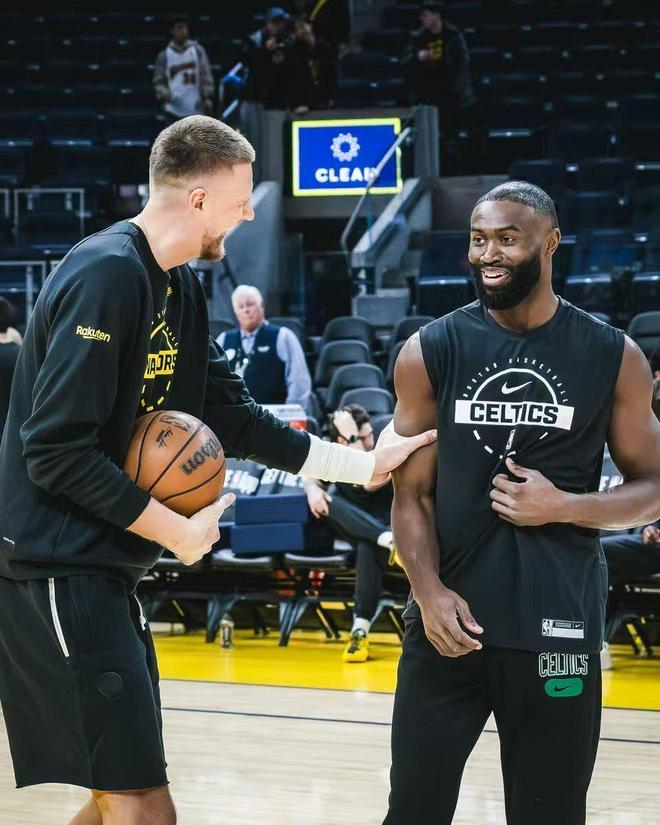 凯尔特人官方晒出赛前布朗与波尔津吉斯互动照片,并配文写道“这是我们想看的。”